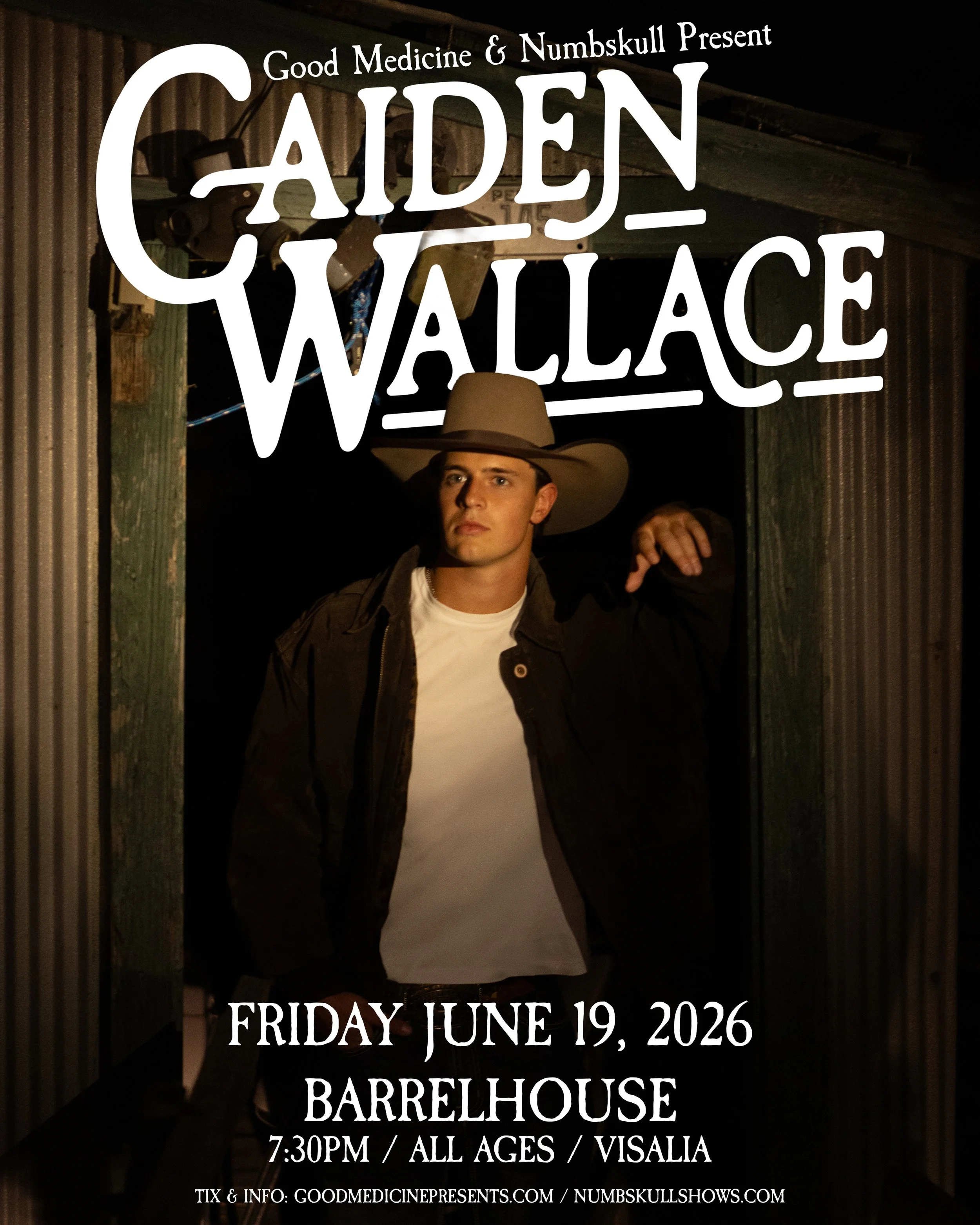 Presented by Good Medicine and Numbskull, this all-ages show brings one of country music’s fastest-rising voices back to where it all began. Hailing from Tulare County, Caiden Wallace is bringing his talents home—delivering a performance that’s as personal as it is powerful. With a sound rooted in traditional country and a fresh edge that’s turning heads, this is your chance to catch him on the rise, right here in his own backyard.