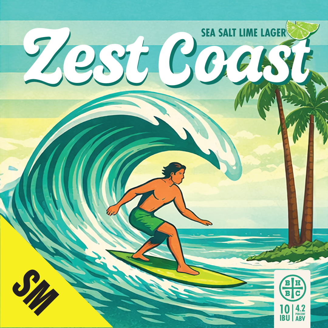 Zest Coast is a lime-kissed lager brewed for blazing summer days and golden Pacific sunsets. With a clean malt body, a splash of real lime, and a crisp, smooth finish, it’s our throwback to endless Central Coast summers—where the only thing colder than the ocean is the beer in your hand.